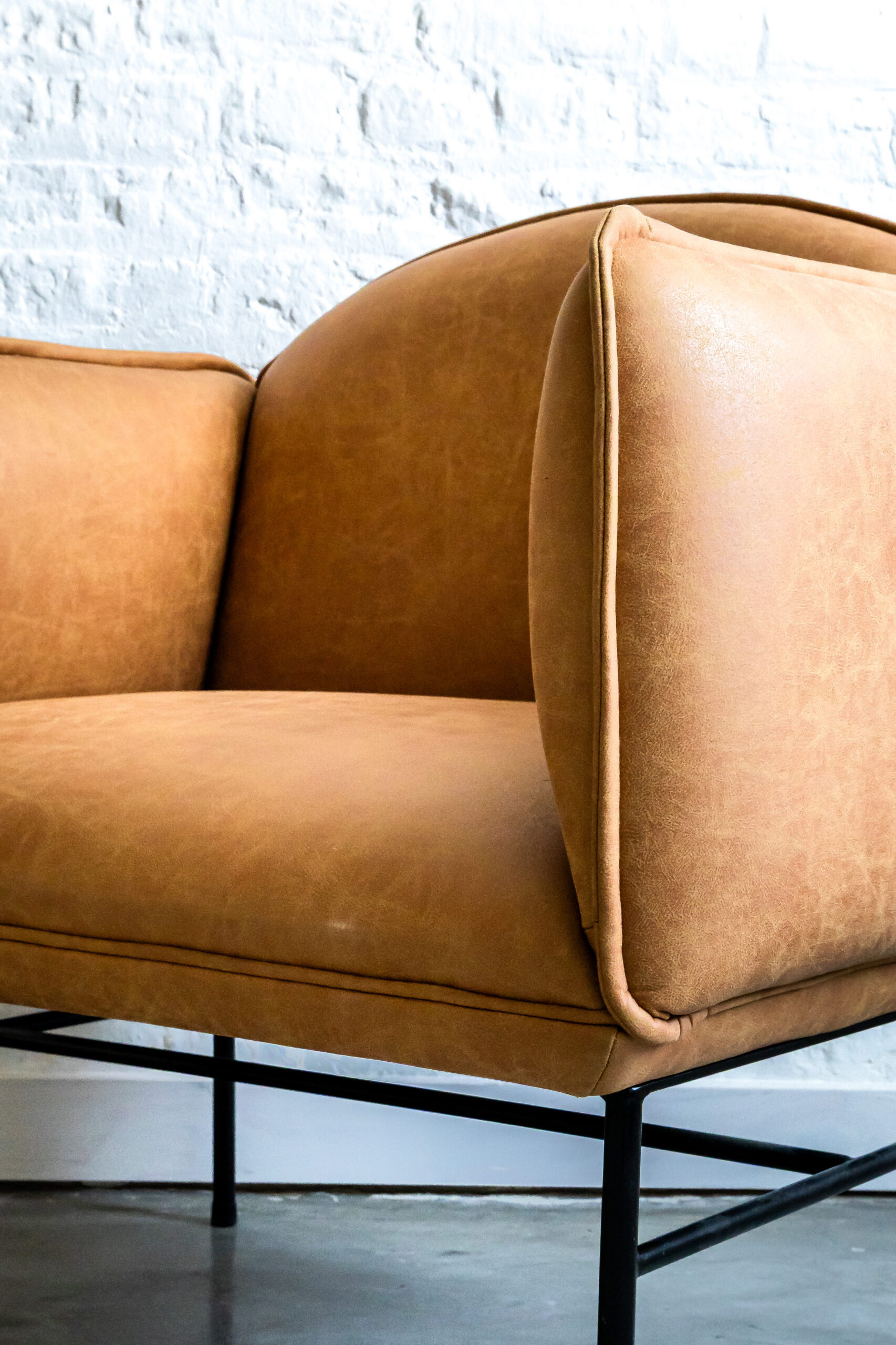 The Axel armchair seamlessly integrates into any interior setting. Also available in a faux leather option.